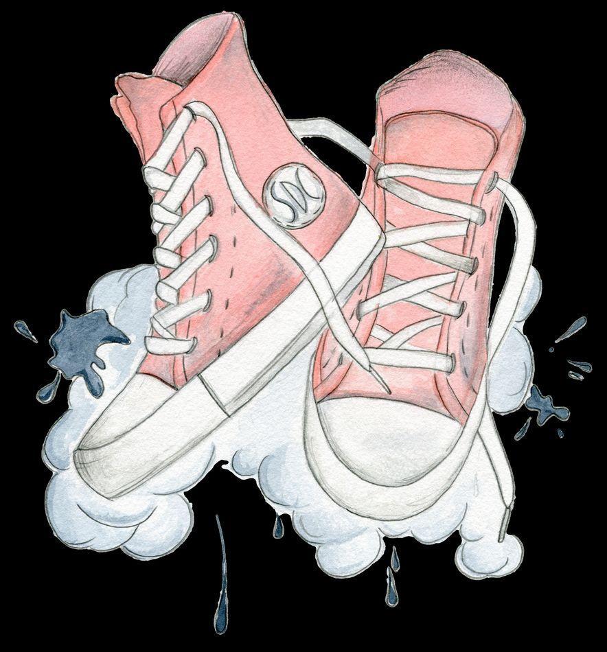 Molona reproducción de dibujo en acuarela pintada a mano de las míticas zapatillas deportivas de tela tipo bota ideales para baloncesto que todos hemos tenido o visto alguna vez. Diseño único y exclusivo deSueños de Cigüeña.